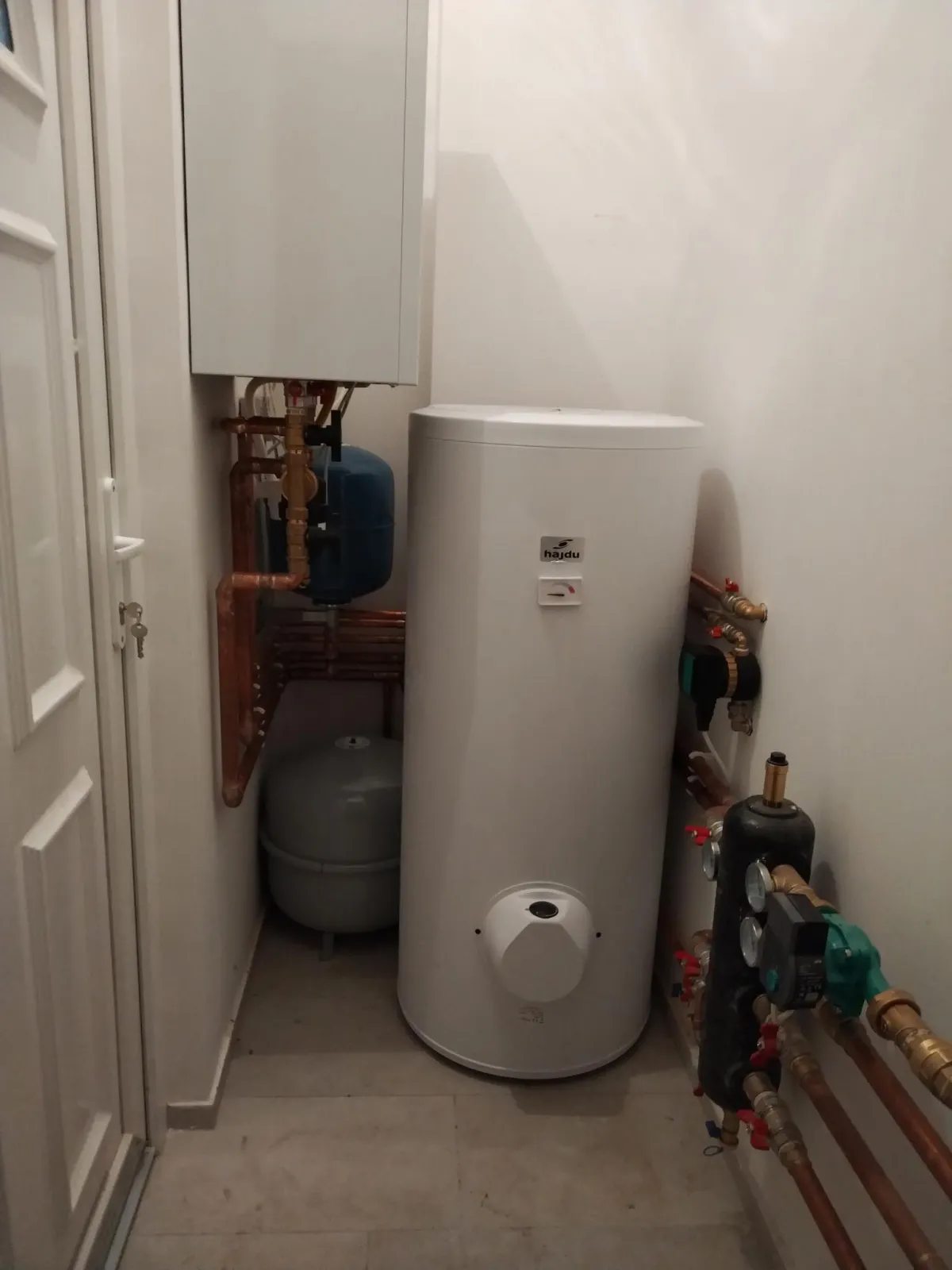 Zárt rendszerű melegvíztárolók, szivattyúk és biztonsági szelepek szakszerű bekötése. Hatékony hőelosztás és hosszú élettartamú megoldások családi házak számára.