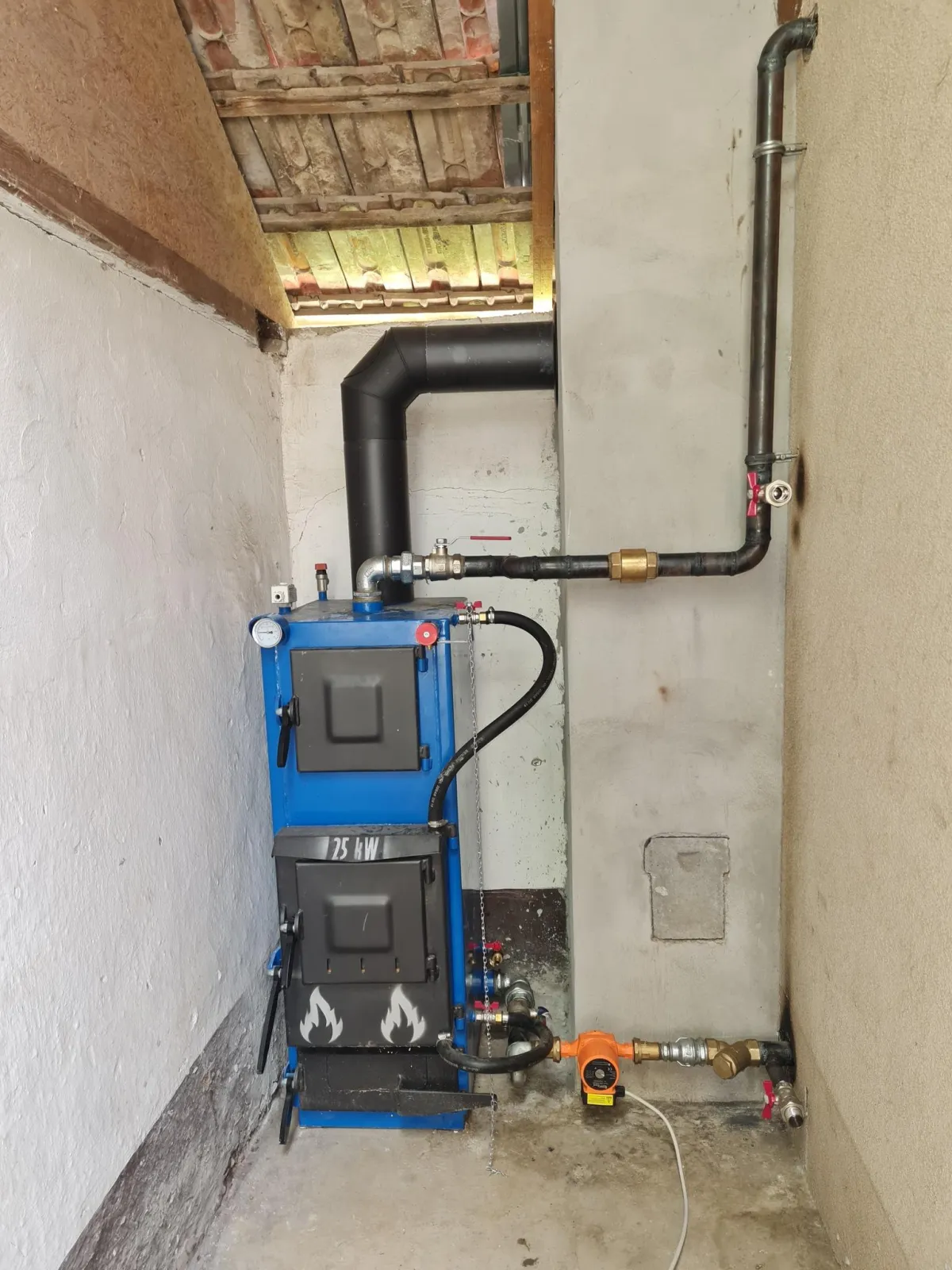 Kazánházak tervezése és kivitelezése vegyestüzelésű kazánnal. Füstgáz-elvezetés, biztonságos csatlakozások, fűtési rendszerhez illesztve – beltéri elhelyezésre optimalizálva.